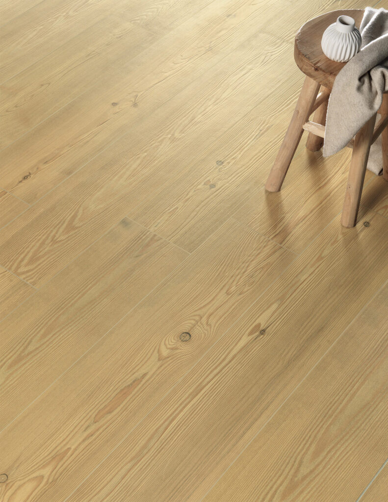 piastrella in gres porcellanato effetto legno di larice, dal colore chiaro paglierino.