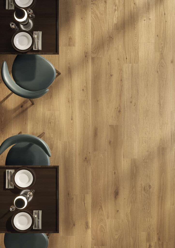 piastrella in gres porcellanato effetto legno di quercia, dal colore